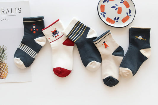 Versatile Two-Tone Kids Socks for Spring & Autumn