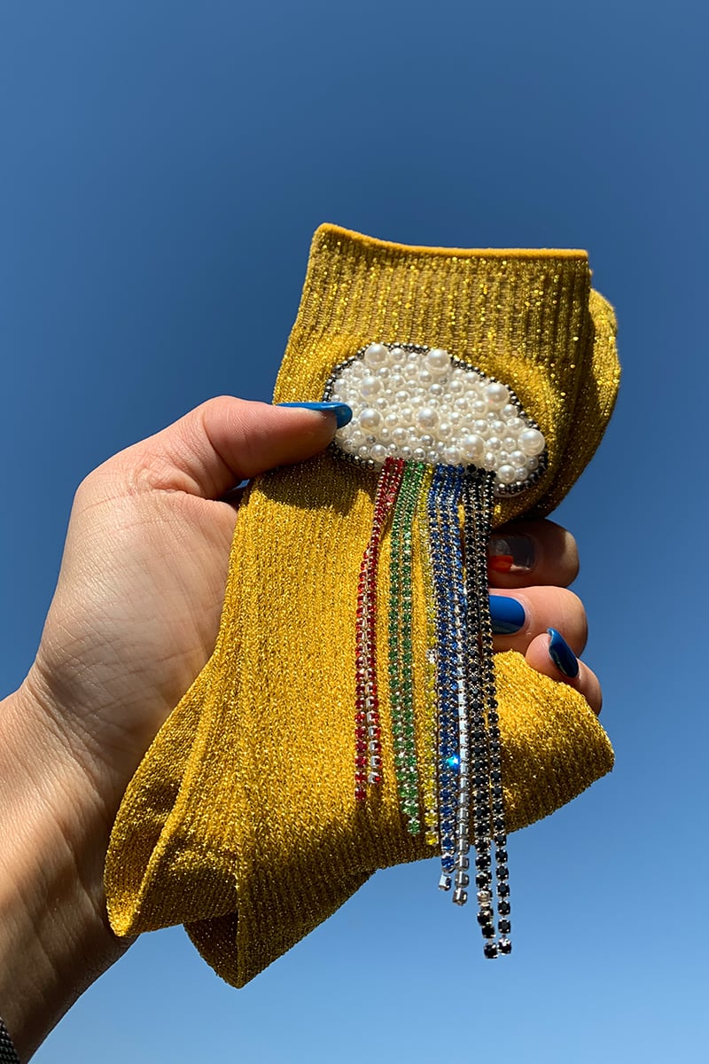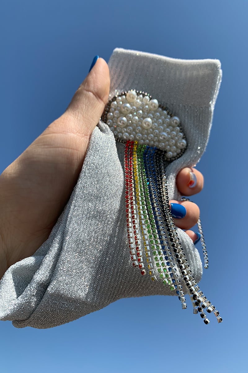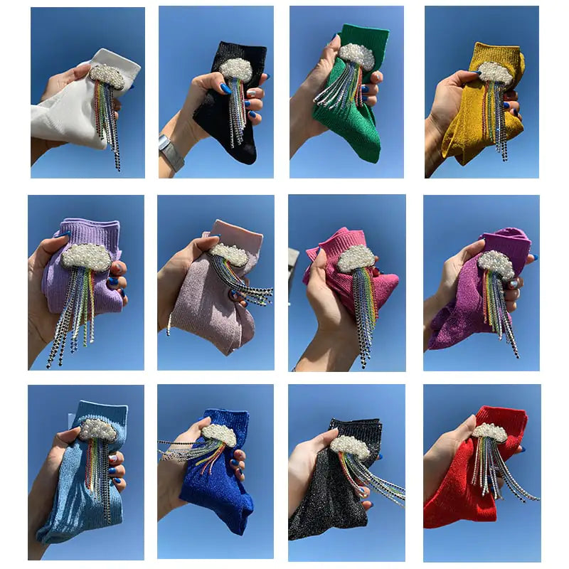 Experience luxury and comfort with our stunning Seven-Color Rainbow Bright Silk Beaded Handmade Women's Socks.